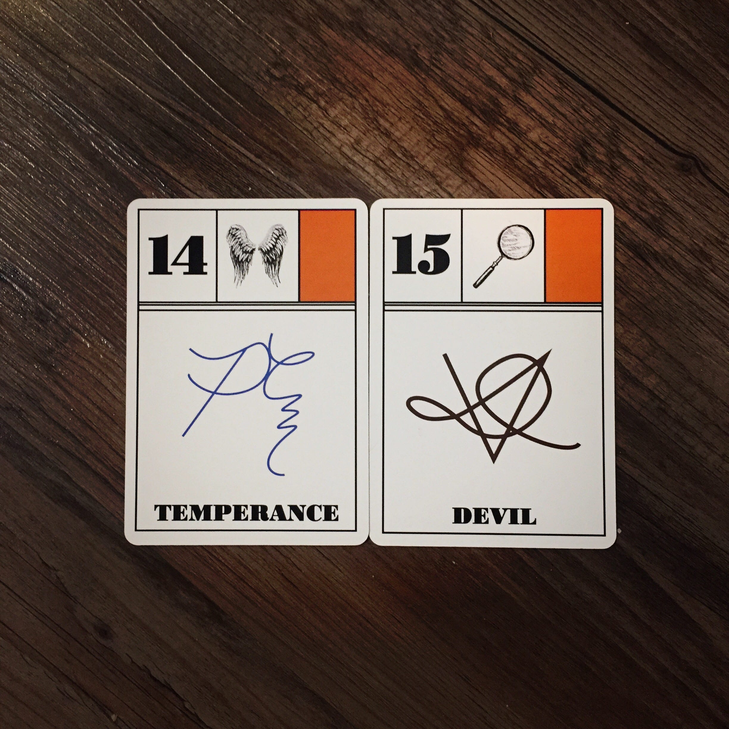 I was reminded of this when thinking about Temperance (XIV)’s relationship with Death (XIII) and distillation in an earlier missive. The progression that follows is just as interesting: that from Temperance (XIV) to the Devil (XV), in which the distilled substance is purified further, but not without significant and permanent sacrifice. The Vitriolic Tarot considers both cards to be part of the process of distillation (noted by the orange markings they share), and I find this to be a fascinating assessment: